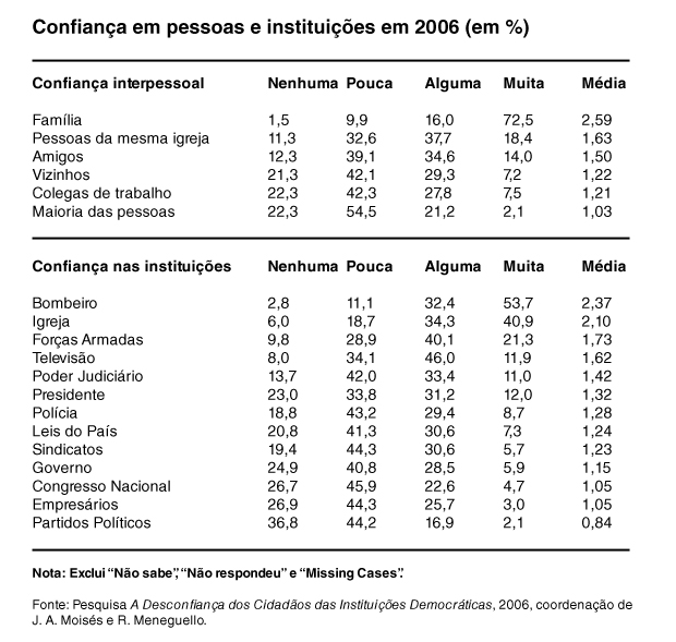 Alvaro Moisés (USP) apontam que o grau de confiança em pessoas do núcleo